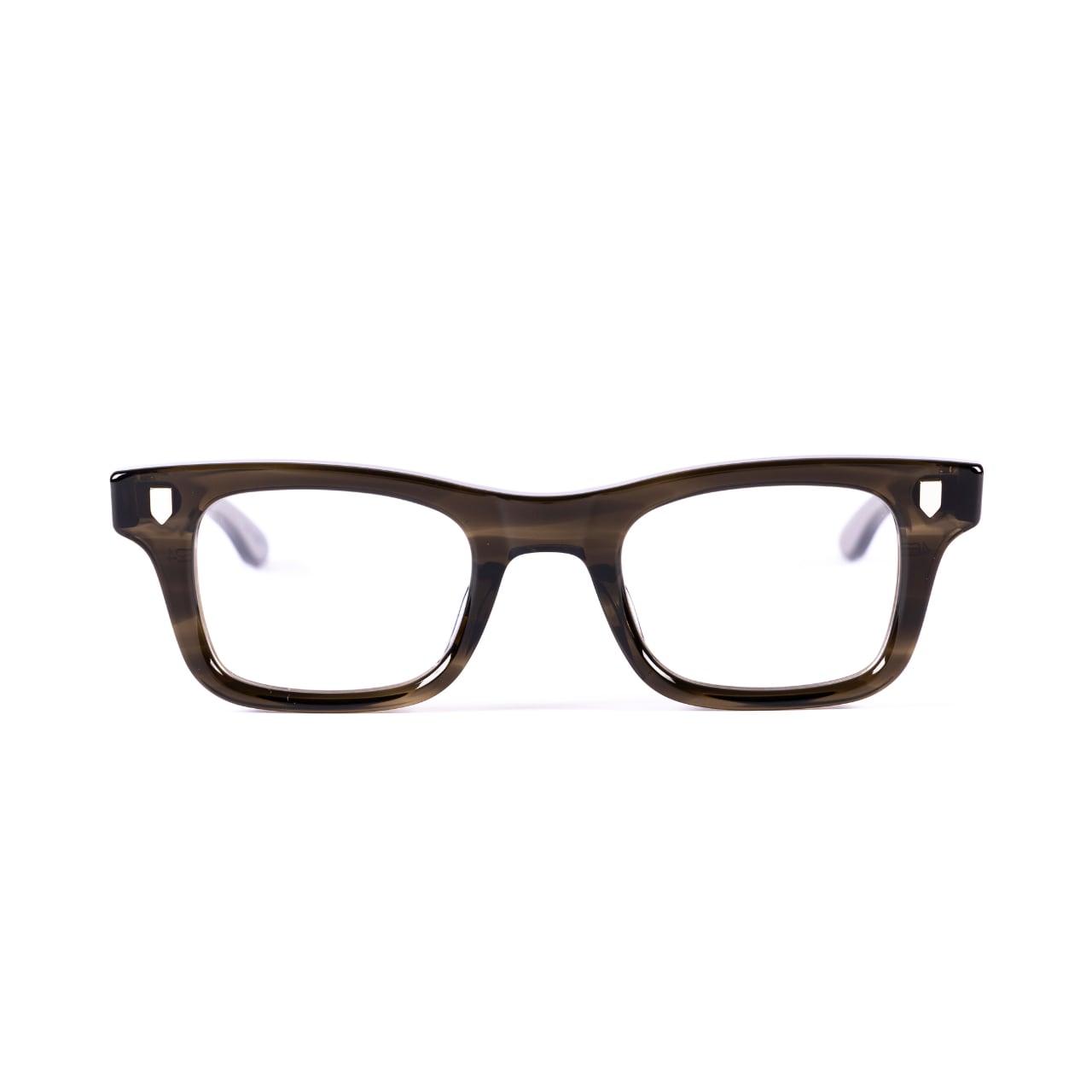 フレームの素材には、タキロン社(日本製)のコットンベースアセテートを使用。部品は日本産の高品質なチタン。職人が全て手作業でフレームを製作している。